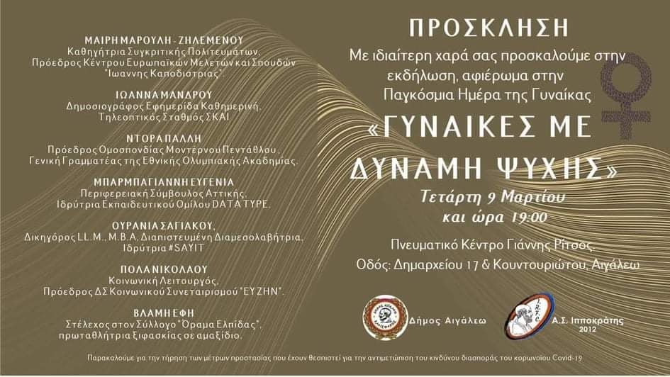 Παγκόσμια Ημέρα της Γυναίκας, την Τετάρτη 9 Μαρτίου 2022 και ώρα 19:00
