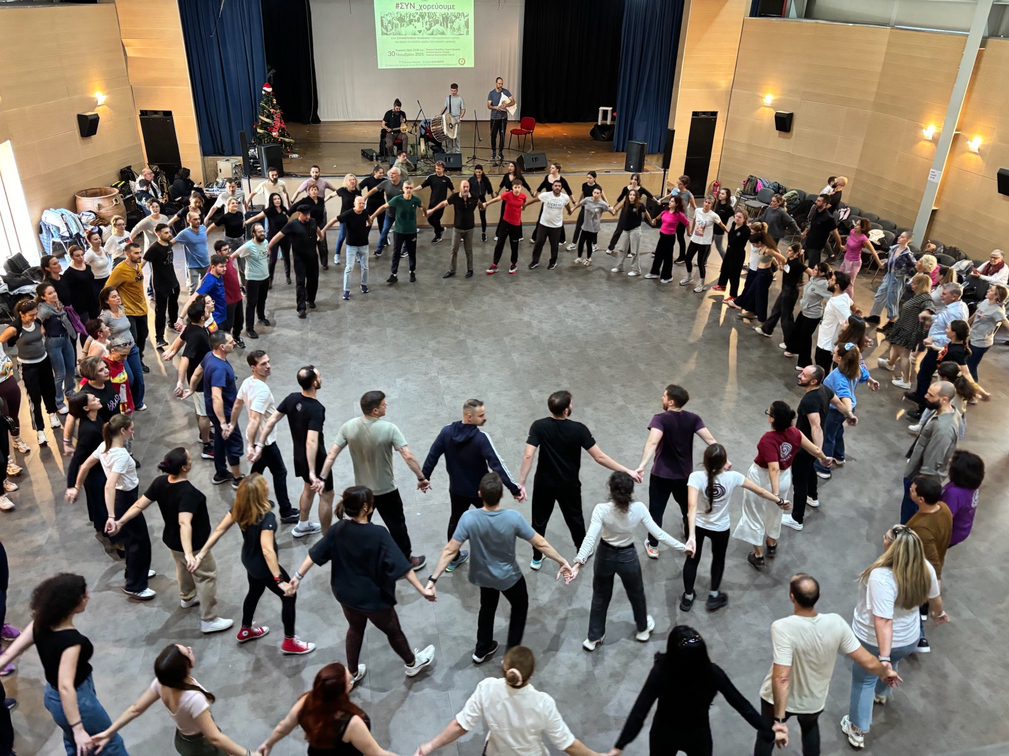 Η δράση «#Συν_χορεύουμε» προσκάλεσε μικρούς και μεγάλους να μπουν σε έναν μεγάλο κοινό κύκλο, να κινηθούν, να μοιραστούν στιγμές, να νιώσουν τη χαρά της ομαδικότητας και να μετατρέψουν τον χορό σε καθημερινή εμπειρία σύνδεσης.