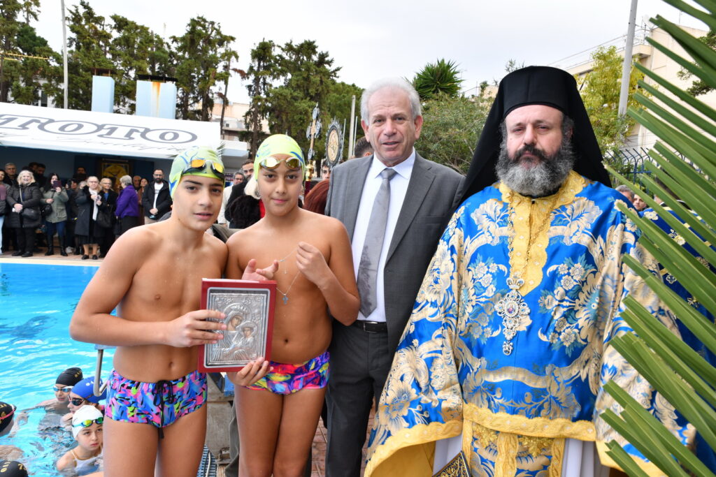 Ο Δήμαρχος Αιγάλεω Λάμπρος Σκλαβούνος, συνεχάρη τους νεαρούς αθλητές και τους προσέφερε από έναν σταυρό, ευγενική χορηγία του κοσμηματοπωλείου «Χρυσοστόμου», το οποίο στηρίζει διαχρονικά τον εορτασμό των Θεοφανείων, τιμώντας με συνέπεια την παράδοση και την τοπική κοινωνία.