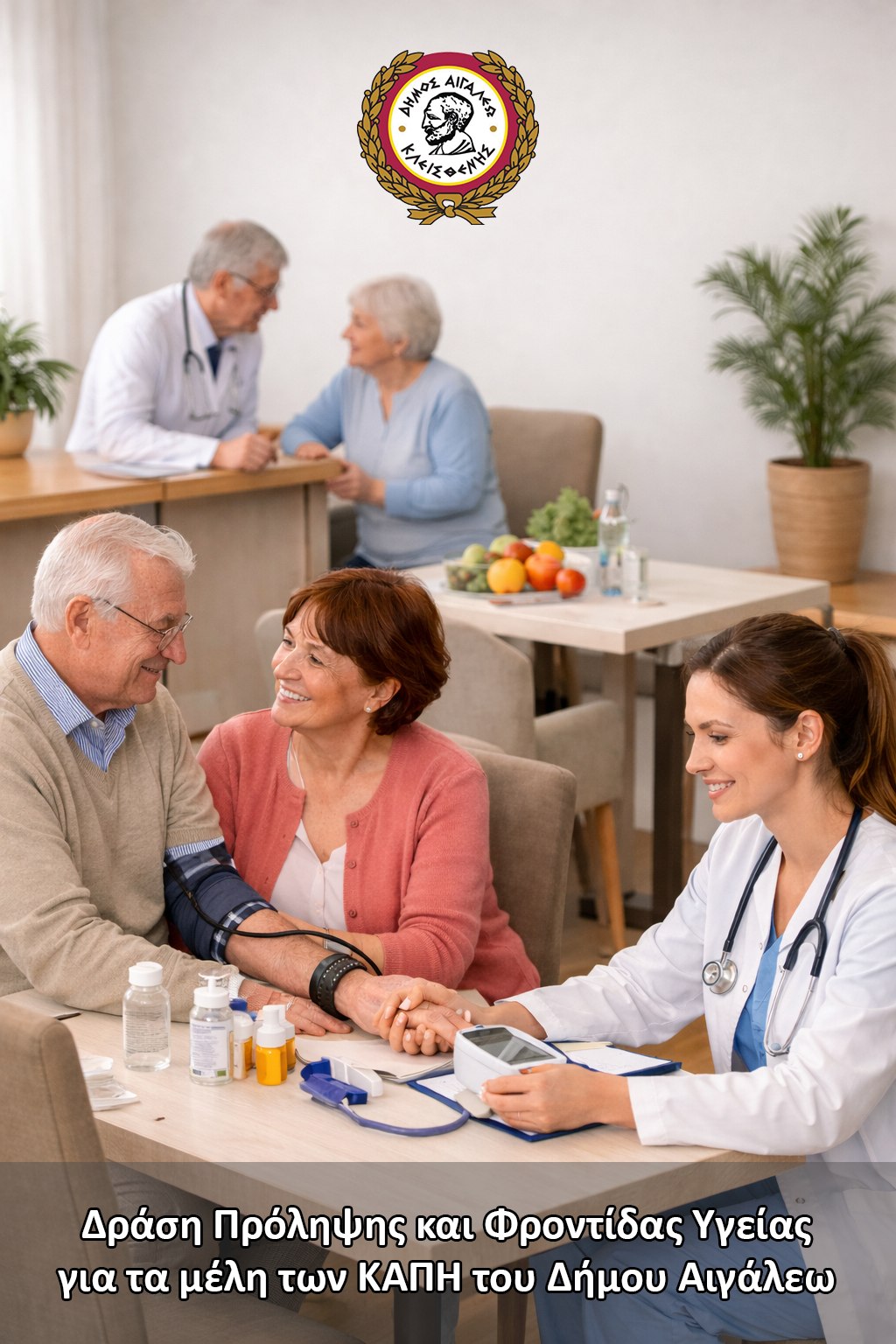 Ο Δήμος Αιγάλεω, στο πλαίσιο της σταθερής του δέσμευσης για τη φροντίδα της τρίτης ηλικίας, υλοποιεί μια σημαντική δράση πρόληψης και υποστήριξης της υγείας των μελών των ΚΑΠΗ της πόλης, μέσω της Διεύθυνσης Κοινωνικής Προστασίας και σε συνεργασία με τη Γενική Κλινική Δυτικής Αττικής «ΒΟΥΓΙΟΥΚΛΑΚΕΙΟ».