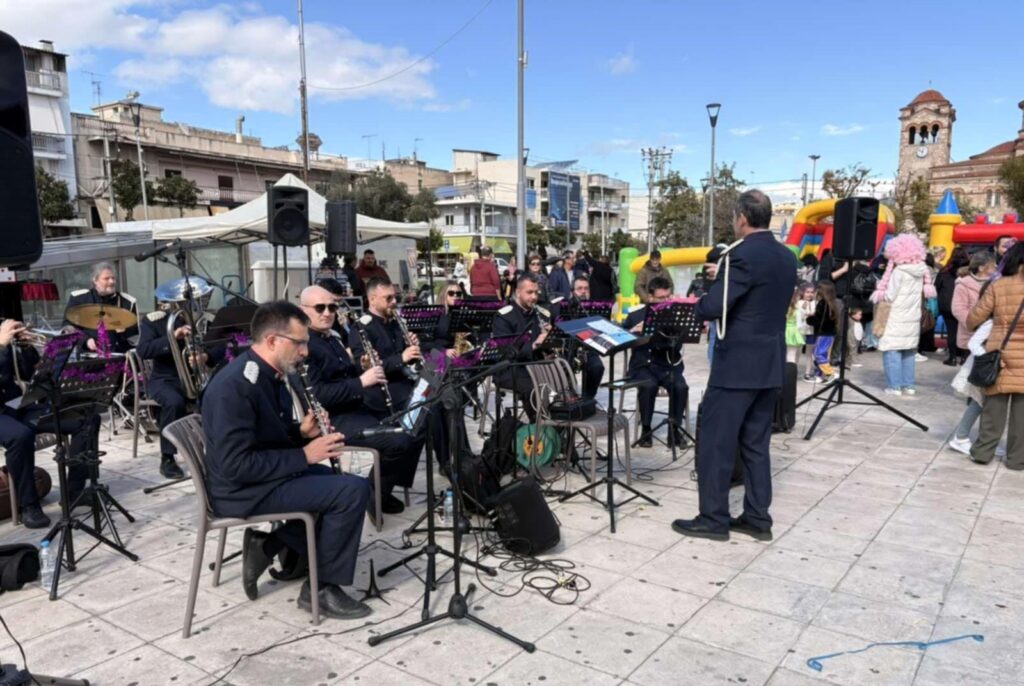 Ξεχωριστή στιγμή αποτέλεσε η αποκριάτικη συναυλία της Φιλαρμονικής του Δήμου, που γέμισε την πλατεία με ρυθμό και μελωδίες από την Ελλάδα και τον κόσμο, ενισχύοντας το εορταστικό κλίμα.