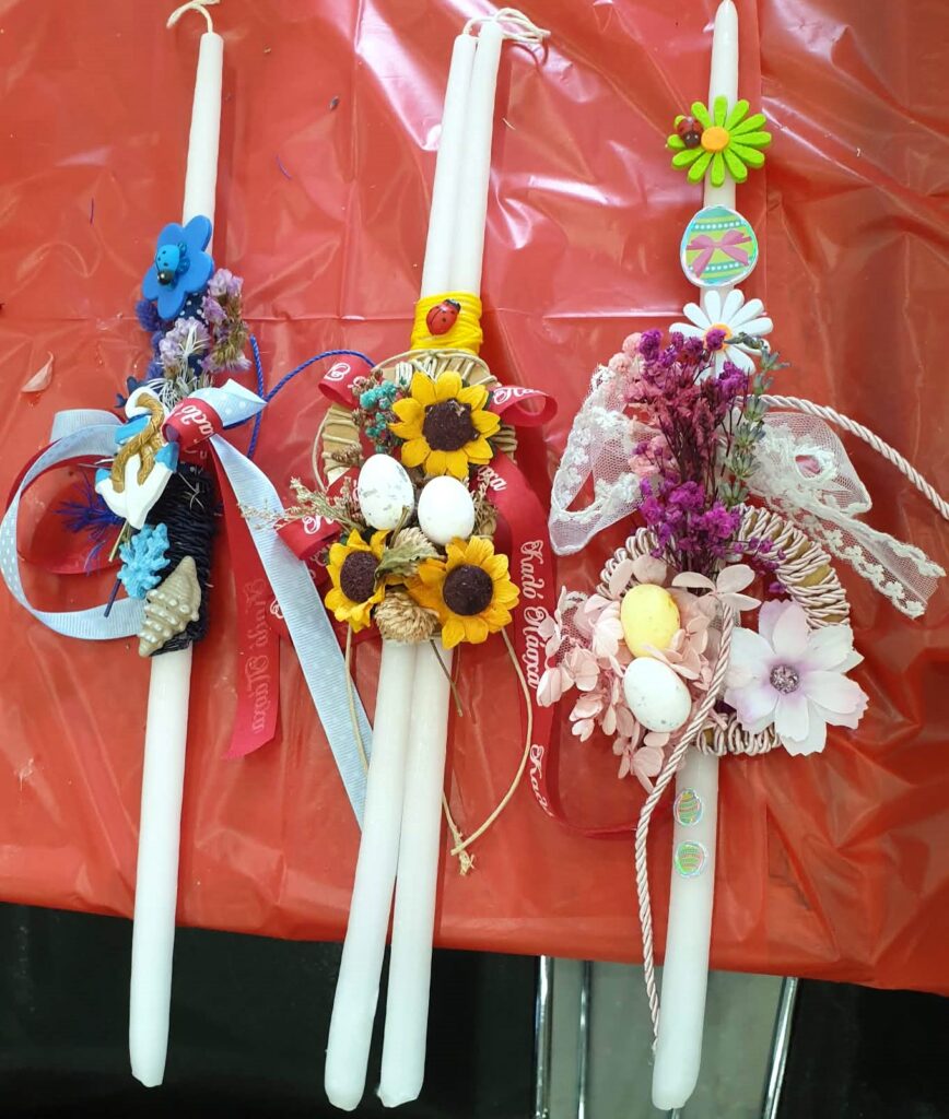 Μικροί δημιουργοί συμμετείχαν με ενθουσιασμό, γνωρίζοντας το όμορφο έθιμο του Πάσχα και φτιάχνοντας τις δικές τους ξεχωριστές λαμπάδες. Με υλικά όπως κορδέλες, δαντέλες, κουμπιά και πολύχρωμα διακοσμητικά, τα παιδιά άφησαν τη φαντασία τους ελεύθερη και δημιούργησαν μοναδικά χειροποίητα έργα.